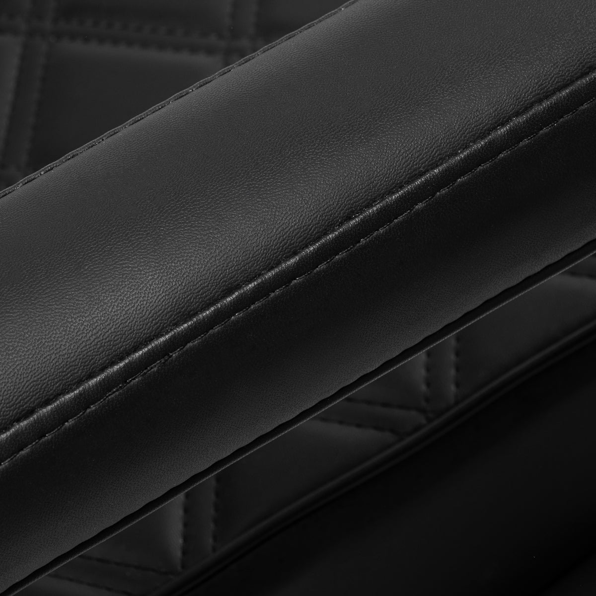 Die solide Konstruktion sorgt für Stabilität und hohen Bedienkomfort. Die Sitzfläche ist mit verformungsbeständigem Schaumstoff gefüllt und eine Polsterung aus weichem, mattem Kunstleder verleiht den Möbeln Langlebigkeit und Komfort. Die feuchtigkeitsbeständigen Materialien sind nicht nur langlebig, sondern auch leicht zu reinigen. Der Schwarzton der Polsterung verleiht dem Stuhl einen einzigartigen Charakter, und sein minimalistischer Stil passt perfekt zur Einrichtung eines jeden Friseursalons.