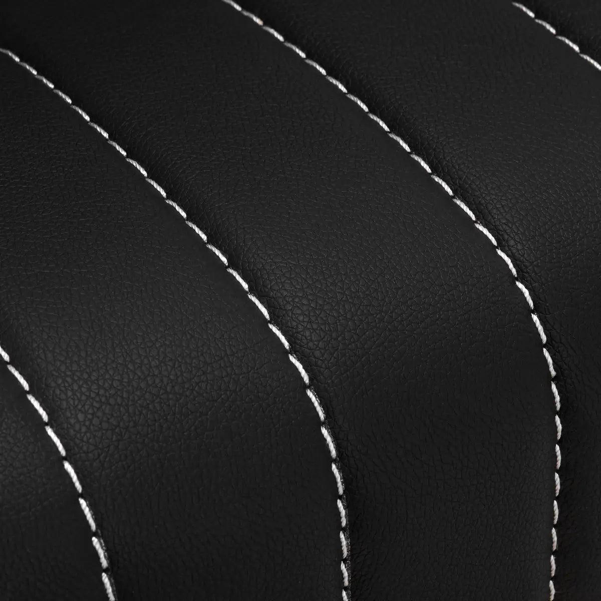 Die solide, breite Konstruktion des Sockels sorgt für Stabilität und damit für hohen Bedienkomfort . Die Füllung aus strapazierfähigem, verformungsbeständigem Schaumstoff und die Polsterung aus angenehm haptischem Kunstleder sorgen für die Langlebigkeit der Möbel und ihre komfortable Nutzung für eine lange Zeit . Außerdem machen sie die Geräte feuchtigkeitsbeständig, langlebig und leicht zu reinigen . Der schwarze Bezug zusammen mit ästhetischen Nähten verleiht ihm einen einzigartigen Charakter. Polierte Designer-Dekorationselemente , die sich auf den Vintage-Stil beziehen, fügen sich perfekt in die Atmosphäre von Friseursalons ein und schaffen deren erstaunliche Atmosphäre.
