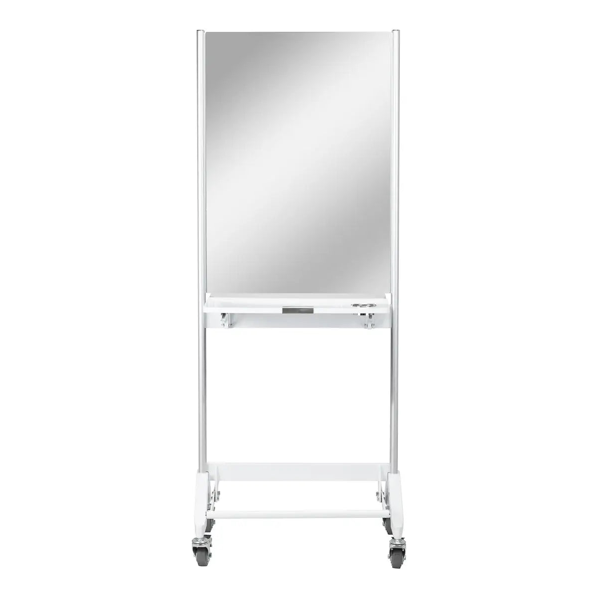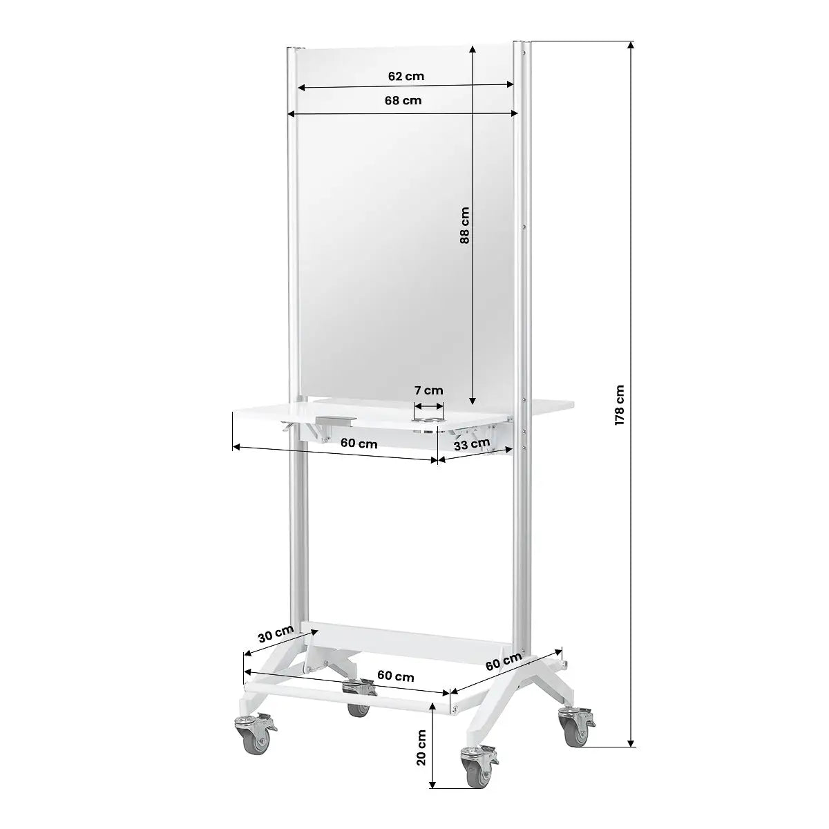 Das praktische Klappregal in einer Höhe von 90 cm ist einer der Hauptvorteile der MI-03 Konsole, die Platz spart und gleichzeitig funktionalen Stauraum bietet. Darüber hinaus sorgen das doppelseitige Design und die feststellbaren Räder für Mobilität und einfaches Bewegen der Konsole. Die Löcher in der Ablage dienen als Halterung für den Trockner, was ihn noch praktischer und an die Bedürfnisse von Profis in der Friseurbranche angepasst macht.