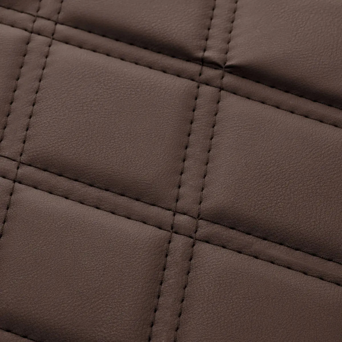 Die solide Konstruktion sorgt für Stabilität und hohen Bedienkomfort. Die Sitzfläche ist mit verformungsbeständigem Schaumstoff gefüllt und eine Polsterung aus weichem, mattem Kunstleder verleiht den Möbeln Langlebigkeit und Komfort. Die feuchtigkeitsbeständigen Materialien sind nicht nur langlebig, sondern auch leicht zu reinigen. Der Braunton der Polsterung verleiht dem Stuhl einen einzigartigen Charakter, und sein minimalistischer Stil passt perfekt zur Einrichtung eines jeden Friseursalons.