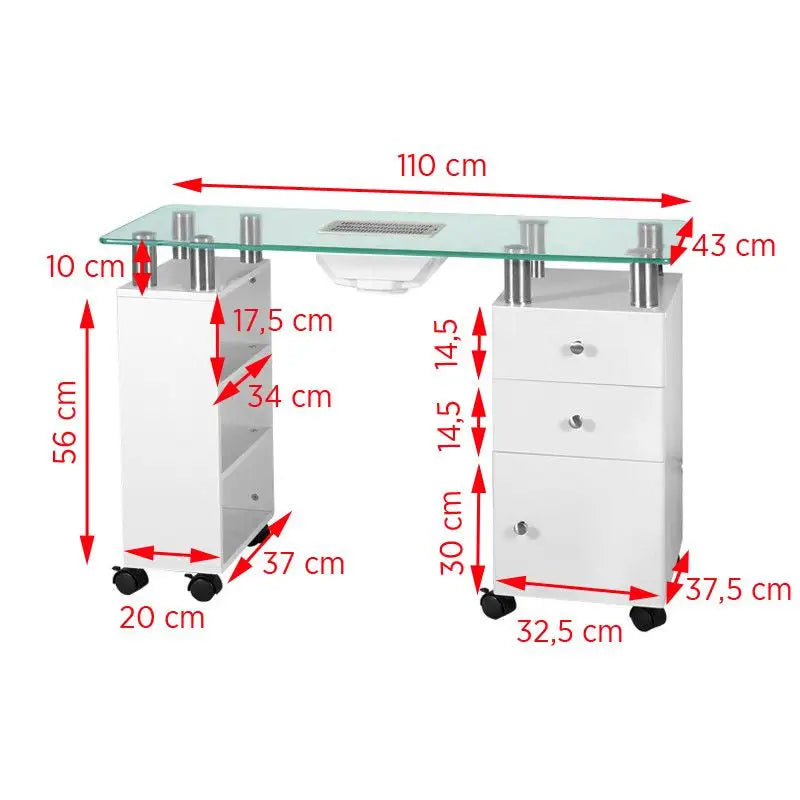 Dieser Kosmetiktisch Glas 013b weiß ist ein Meisterstück funktioneller Eleganz, das Ihnen ein schnelles und effizientes Arbeiten ermöglicht! Sorgen Sie für saubere Arbeitsplätze und genießen Sie das luxuriöse Gefühl reiner Produktivität.
