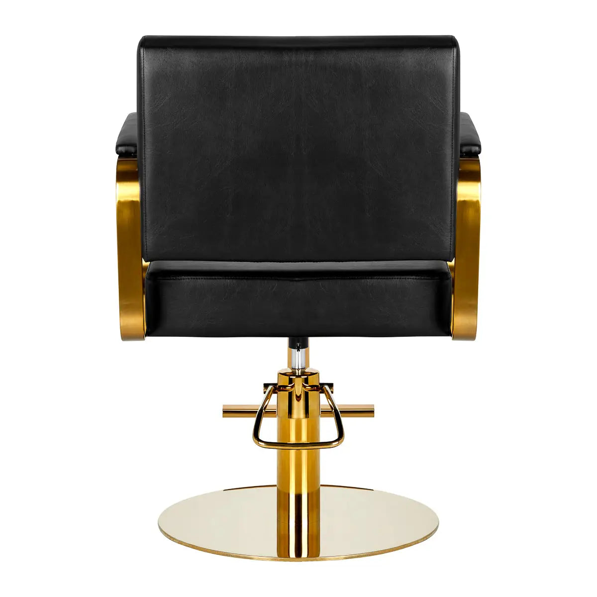 Das bequeme Möbelstück ist mit strapazierfähigem, verformungsbeständigem Schaumstoff gefüllt, während die Polsterung aus angenehm haptischem Kunstleder in Schwarztönen besteht. Die verwendeten Materialien sorgen für eine komfortable Nutzung der Möbel über einen langen Zeitraum und machen die Geräte resistent gegen Feuchtigkeit, langlebig und leicht zu reinigen. Dekorative, geometrische Metallelemente in Goldtönen an den Seiten des Sessels verleihen den Möbeln einen Ausdruck zeitloser Eleganz. Friseurstuhl Gabbiano B217 zeichnet sich durch sein Design aus, das ihm einen einzigartigen Charakter verleiht und den Sessel in vielen eleganten Wohnzimmern großartig aussehen lässt.