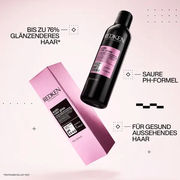 Das Acidic Color Gloss Glass Treatment verleiht deinem Haar in Sekunden intensiven Glanz, der bis zu 3 Tage anhält. Entwickelt mit Friseuren, sorgt die pH-ausgleichende Formel mit Zitronensäure und Aprikosenöl für bis zu +76 % mehr Glanz. Perfekt für coloriertes Haar, das gesund und strahlend aussehen soll.